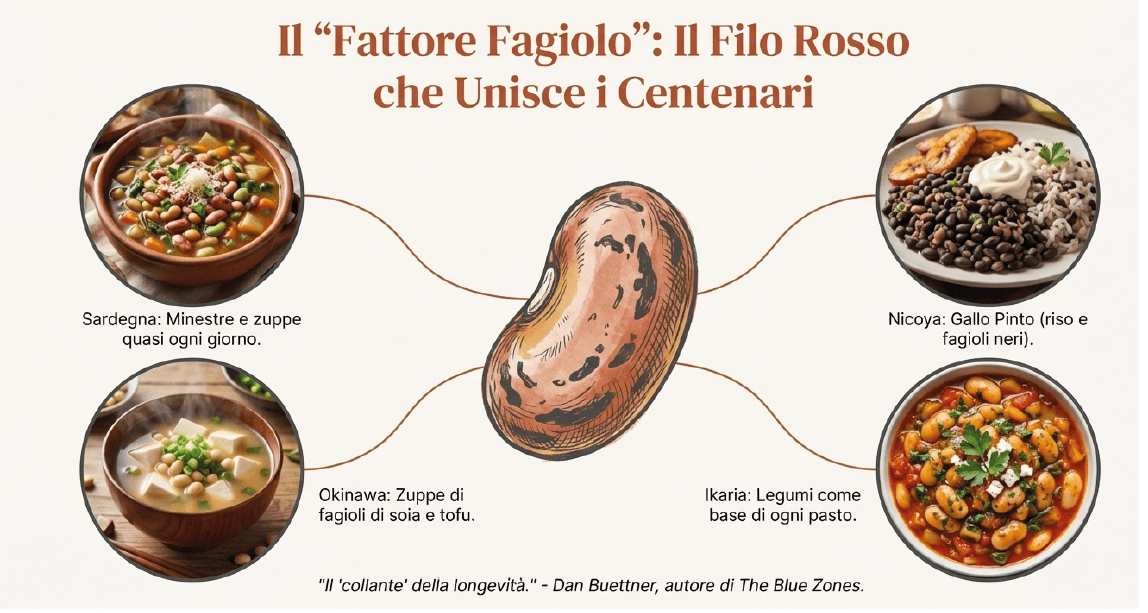 A Okinawa in Giappone, a Nicoya in Costa Rica, in Sardegna o a Ikaria in Grecia, le persone superano i 90 anni con una salute invidiabile. E in tutte queste regioni compare un ingrediente ricorrente: i legumi, in particolare i fagioli.
