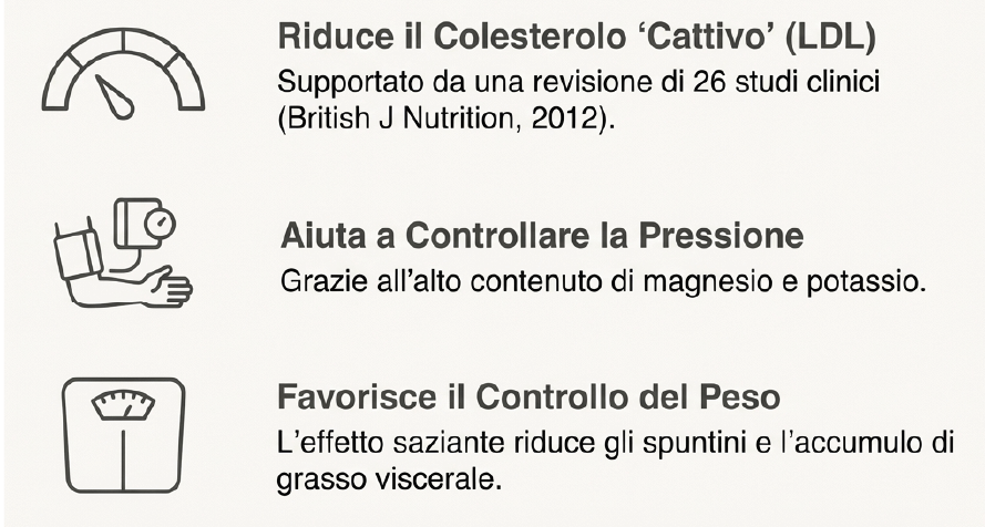 Migliorano la salute intestinale, nutrono il microbiota, riducono il colesterolo LDL e stabilizzano la glicemia.