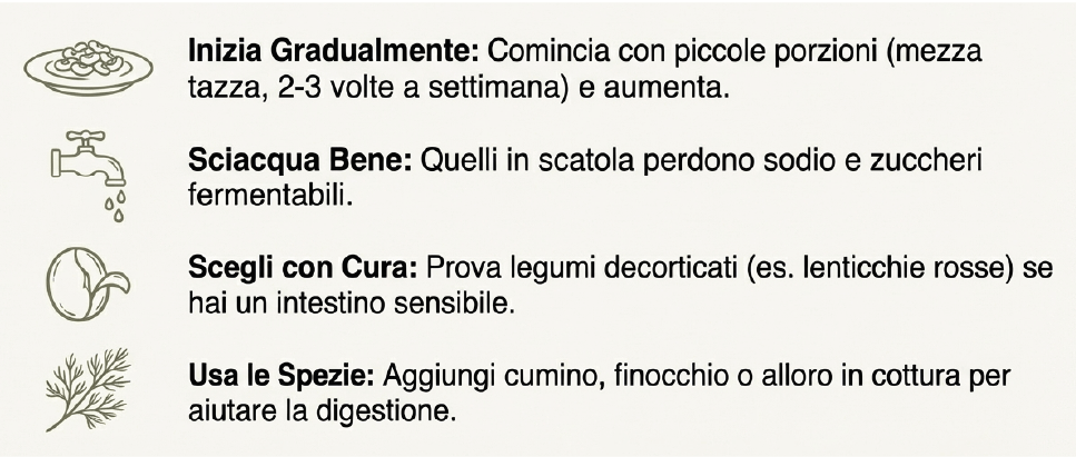 Aggiungi spezie digestive come cumino, finocchio o alloro in cottura.